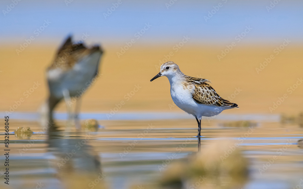 Little Stint (Calidris minuta) is is a wetland bird that lives in the northern parts of the European and Asian continents. It feeds in swampy areas.