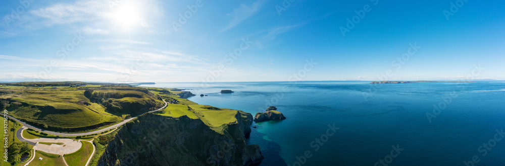 aerial panoramic view of summer countryside North coastline, Northern Ireland