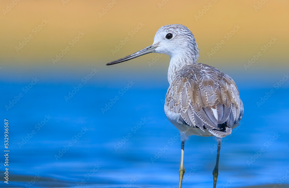 Common Greenshank (Tringa nebularia) is a wetland bird that lives in Africa, Europe and Asia. It usually feeds on fresh water.