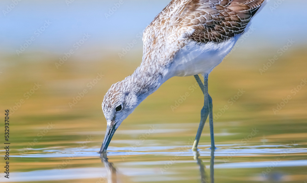 Common Greenshank (Tringa nebularia) is a wetland bird that lives in Africa, Europe and Asia. It usually feeds on fresh water.