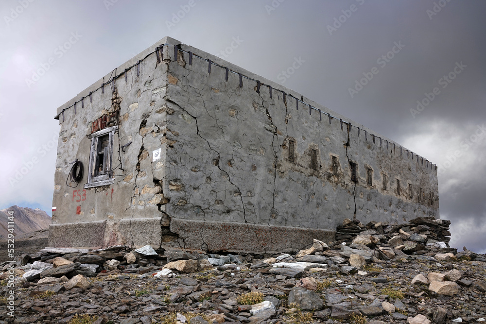 Ruine eines Militärgebäudes am Via Alto Val di Susa - zwischen Val Fredda und Rifigio Vaccarone, Piemont, Italien