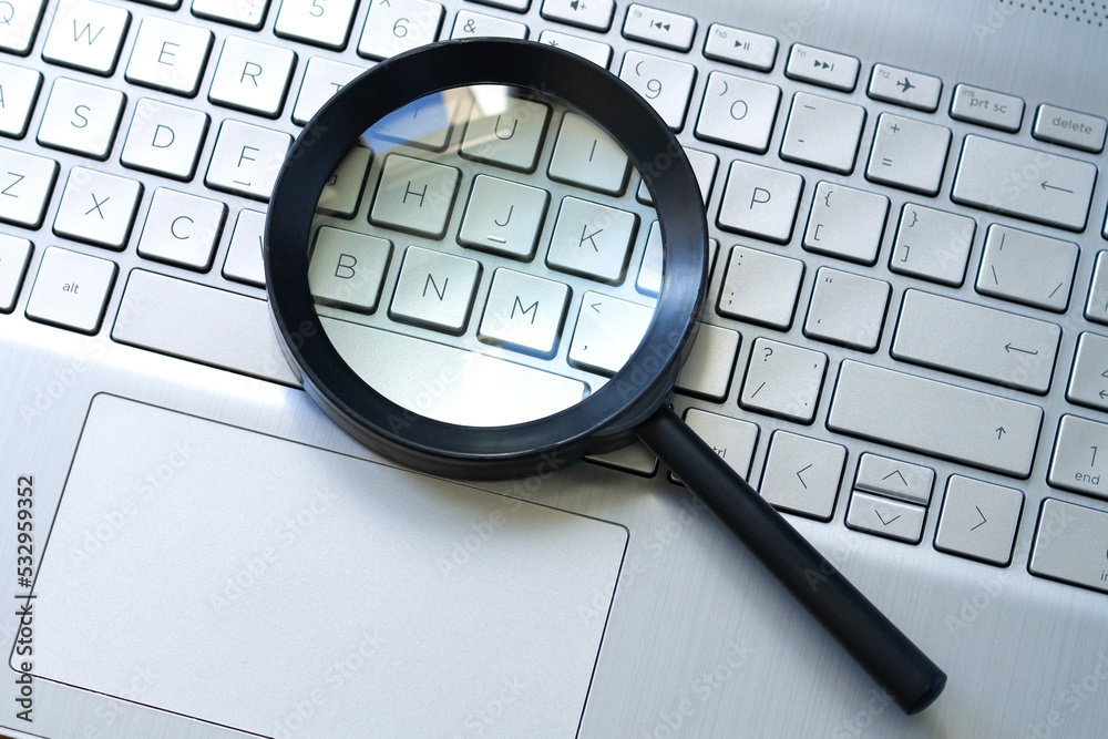Laptop keyboard, searching or data security concept