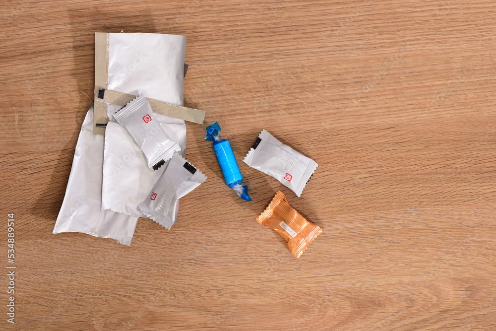 お菓子と開封したお菓子の袋
