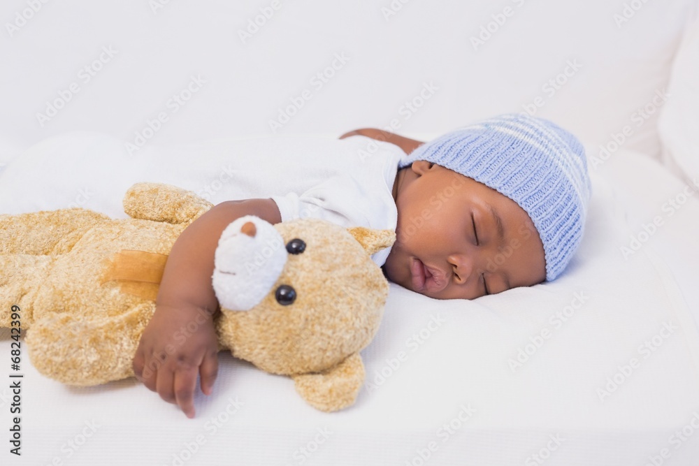 Empty space on minimal white tabletop over blurred minimal living room in the background