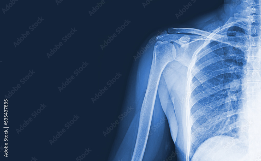 x-ray images of the shoulder joint to see injuries bones and tendons for a medical diagnosis.Medical image concept and copy space.