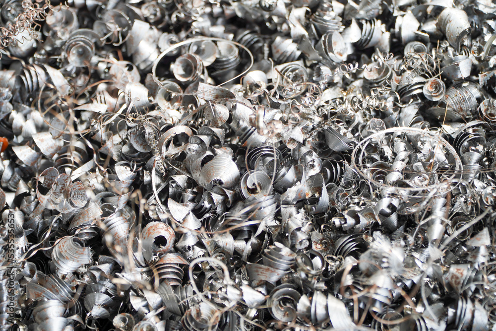 Abstract textures and patterns - Scrap metal shavings swirls. Steel scrap materials recycling.