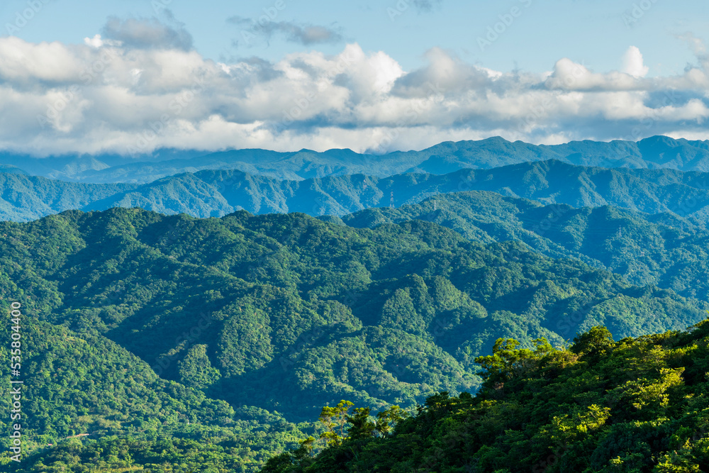 Layers of magnificent mountains and clear clouds background in Taiwan.