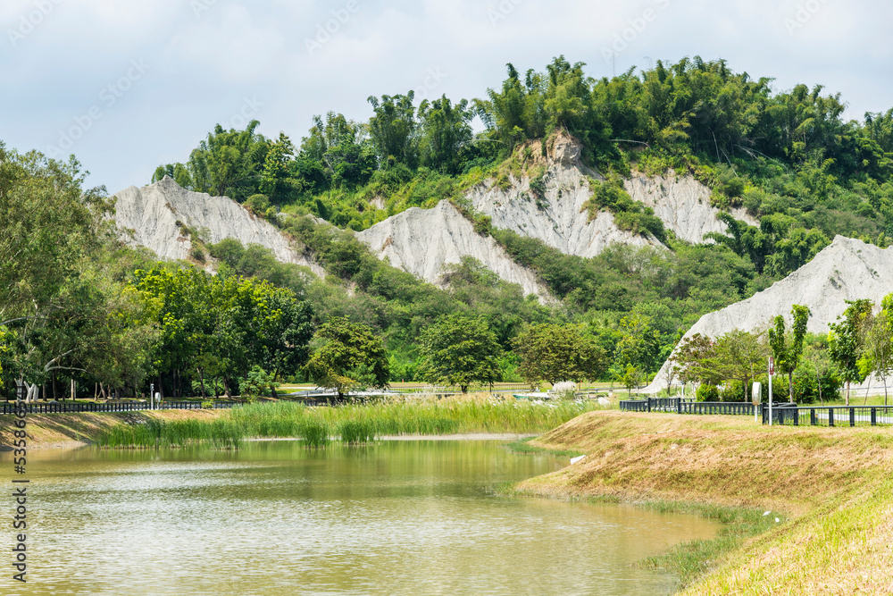 Badlands Geological landscape of Tianliao Moon World Scenic Area in Kaohsiung, Taiwan. it's famous for its similarity to the landscape of the Moon's surface.