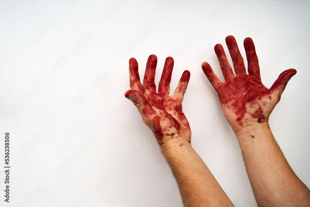 Bloody hand isolated on white background