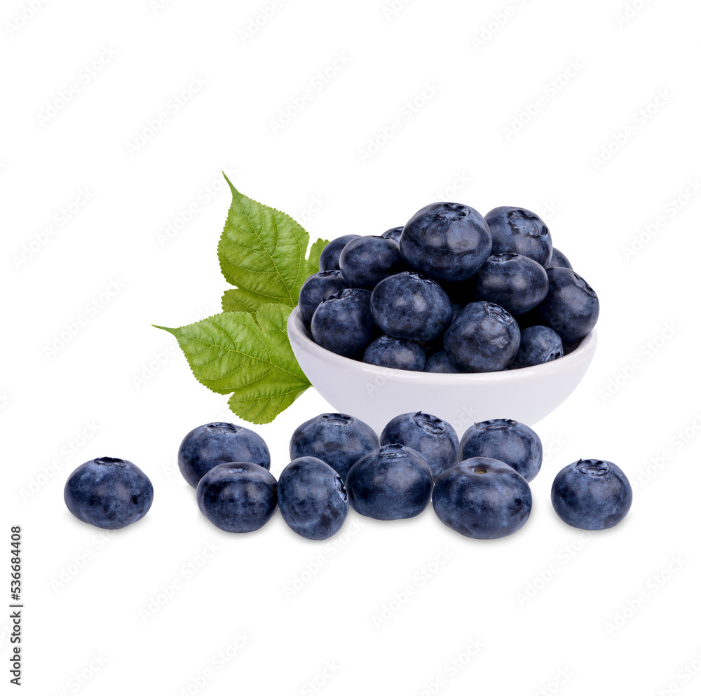 Fresh blueberry with leaves isolated on transparent background. (.PNG)