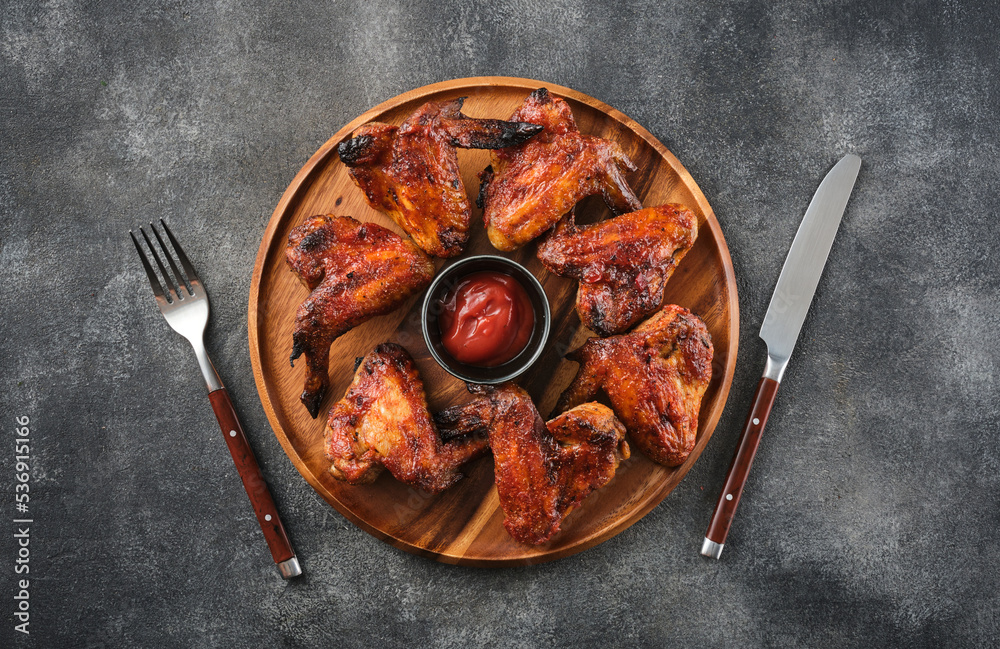 Grilled chicken wings with ketchup. Spicy chicken wings