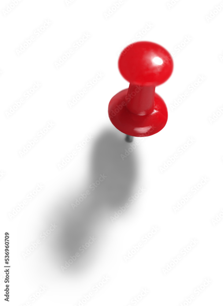 Red pushpin with shadow isolated on white background.