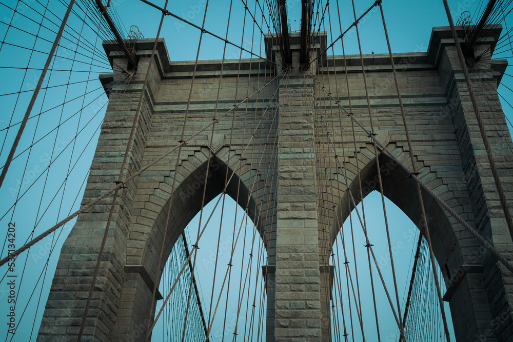Architectural details of the Brooklyn Bridge, Manhattan, New York