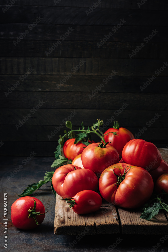 Freshly picked ripe red organic tomatoes.