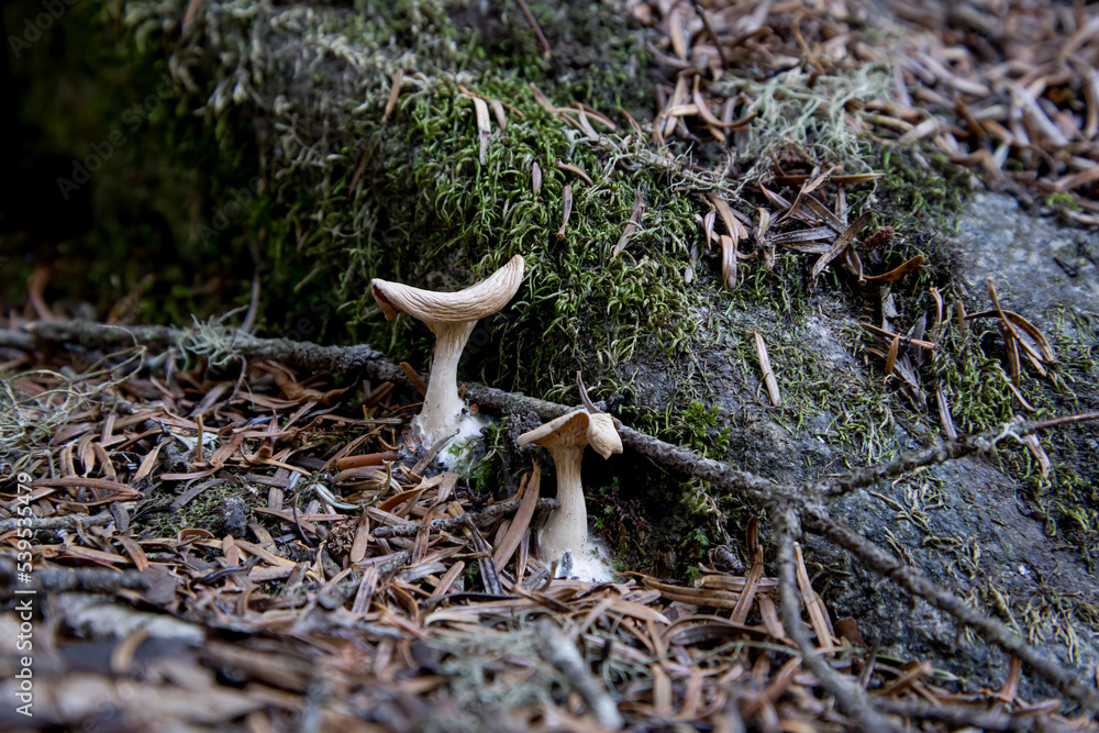 Isolated wild mushroom found in the woods, Pyrenees, France