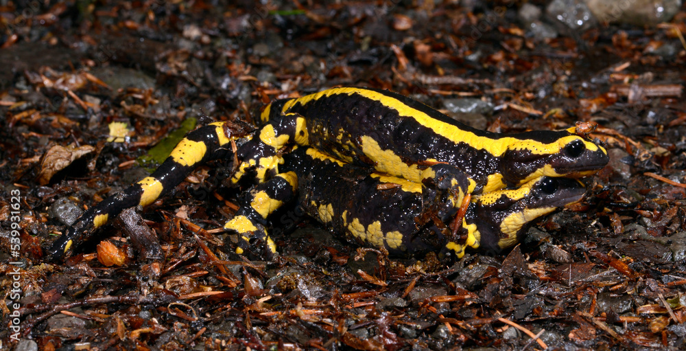Mating of the Fire salamander // Feuersalamander-Paarung (Salamandra salamandra terrestris) - Wuppertal, Gernany