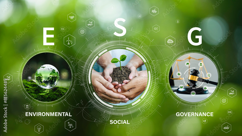 ESG concept of environmental, social and governance. words ESG on a wood cube is an idea for business sustainable organizational development. account the environment, society and corporate governance