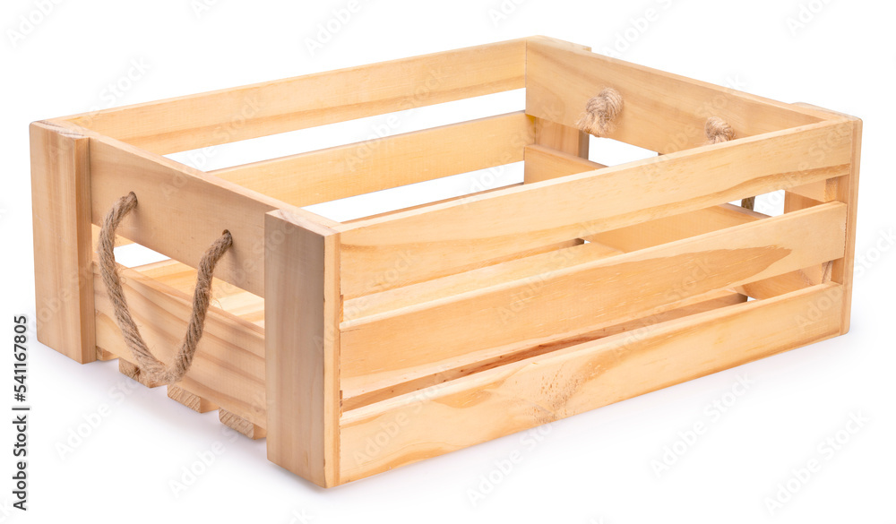 Wooden crate basket isolated on white background, Wooden box on white background, With work path.
