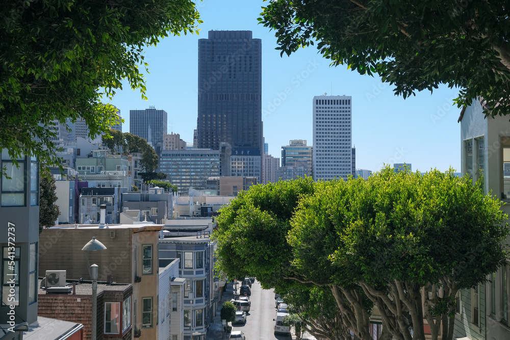Panoramic scenic aerial view over San Francisco Bay Area with Golden Gate Bridge, downtown skyline cityscape and Alcatraz island sailing boats yachts harbor landmark sights Tower scenery
