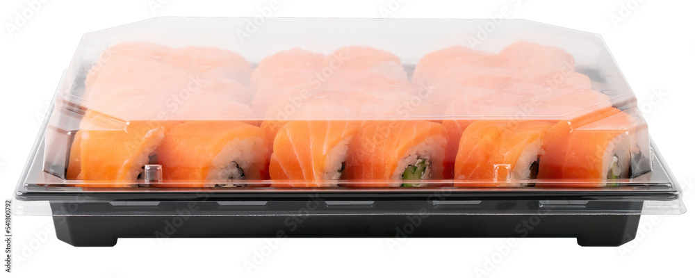 Philadelphia rolls in a plastic box. PNG with transparent background made using clipping path