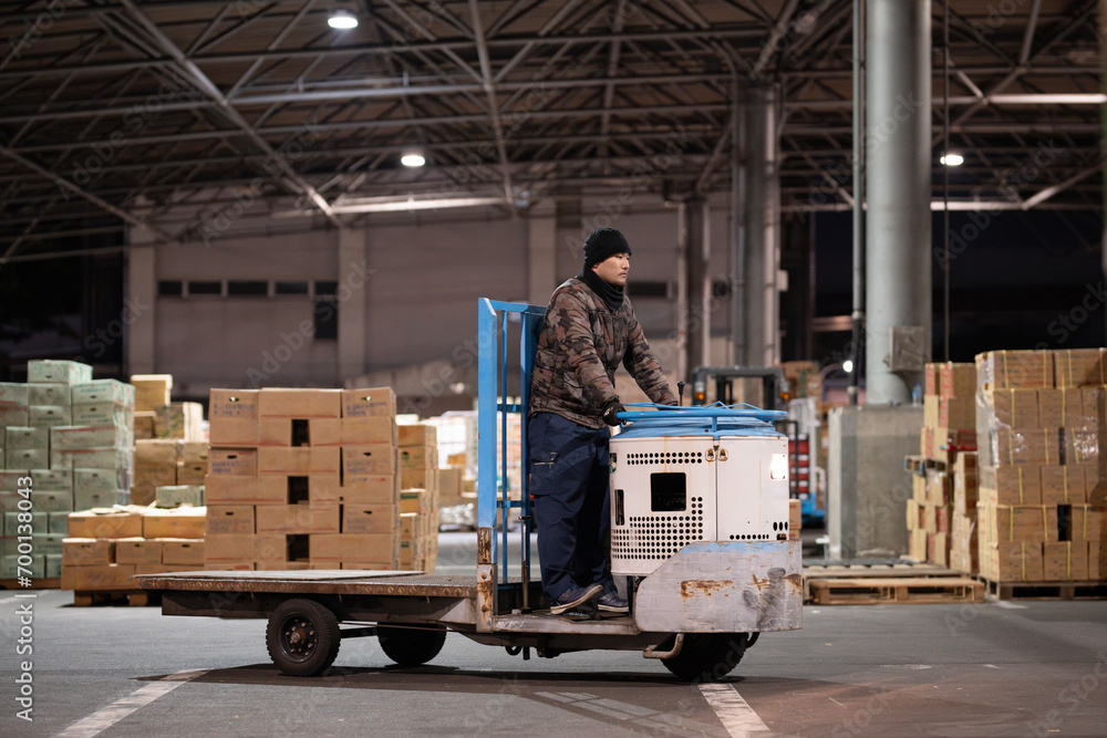Cup of coffee on warm gray plaid background. Hot drink cappuccino in mug on blue notebook. Cozy winter still life. Top view, flat lay