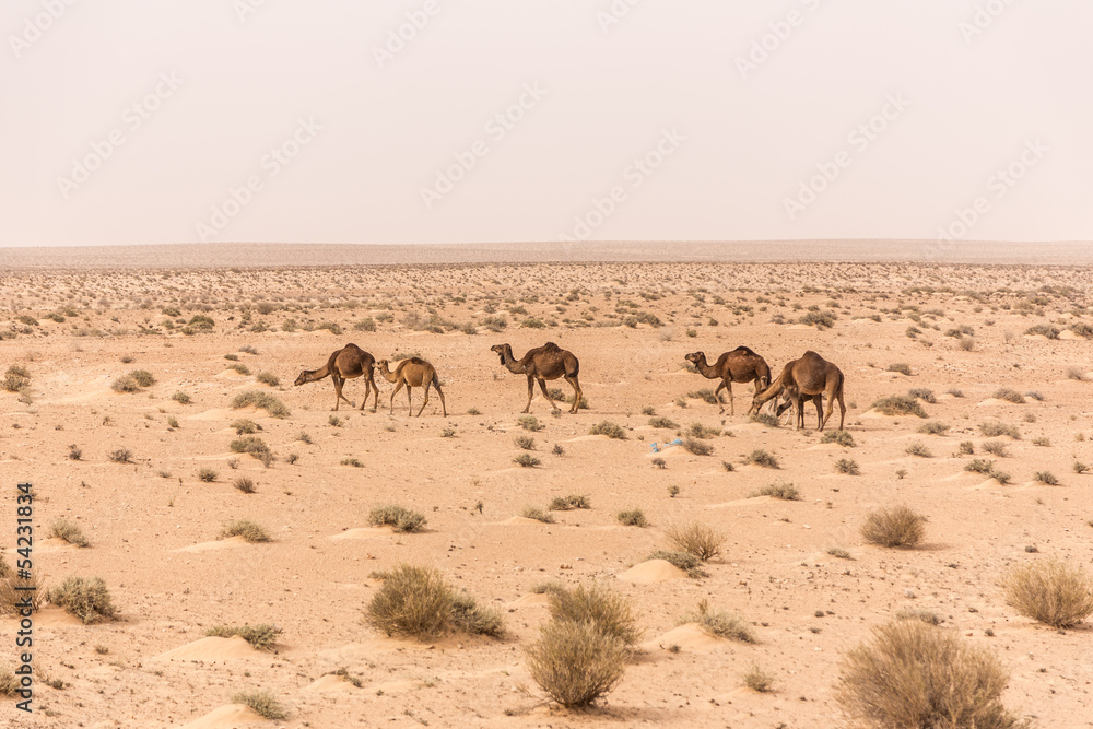 camels in Sahara desert in Tunisia