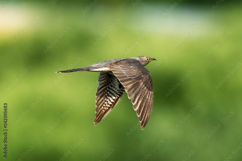 Selective shot of common cuckoo (Cuculus canorus) known as a Lazy bird flying
