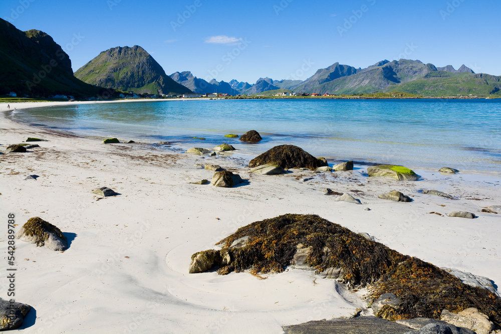 Beautiful Rambergstranda beach in Lofoten, Norway