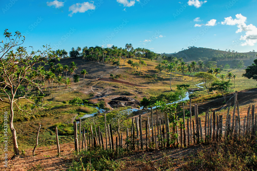 Farm with coconut trees in the countryside of Bahia, Cidade do Conde Brazil
