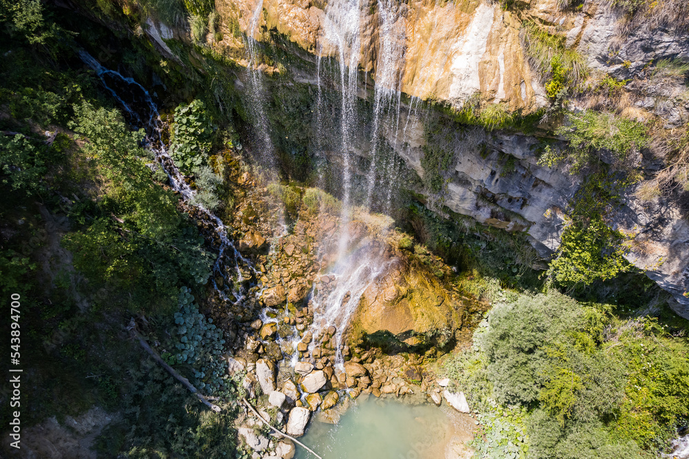 Detail of the water stream of Sotira river with waterfall in Summer 2022, Albania