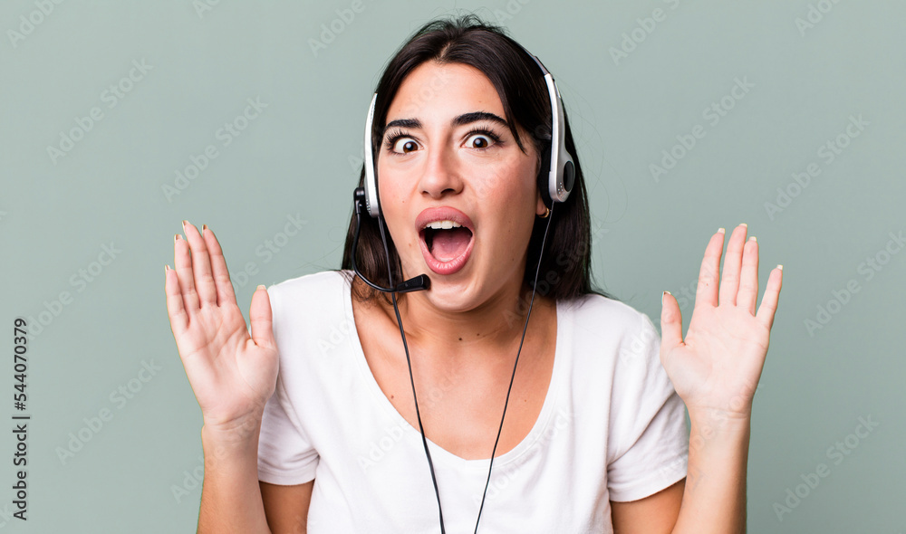 feeling happy and astonished at something unbelievable. telemarketer concept