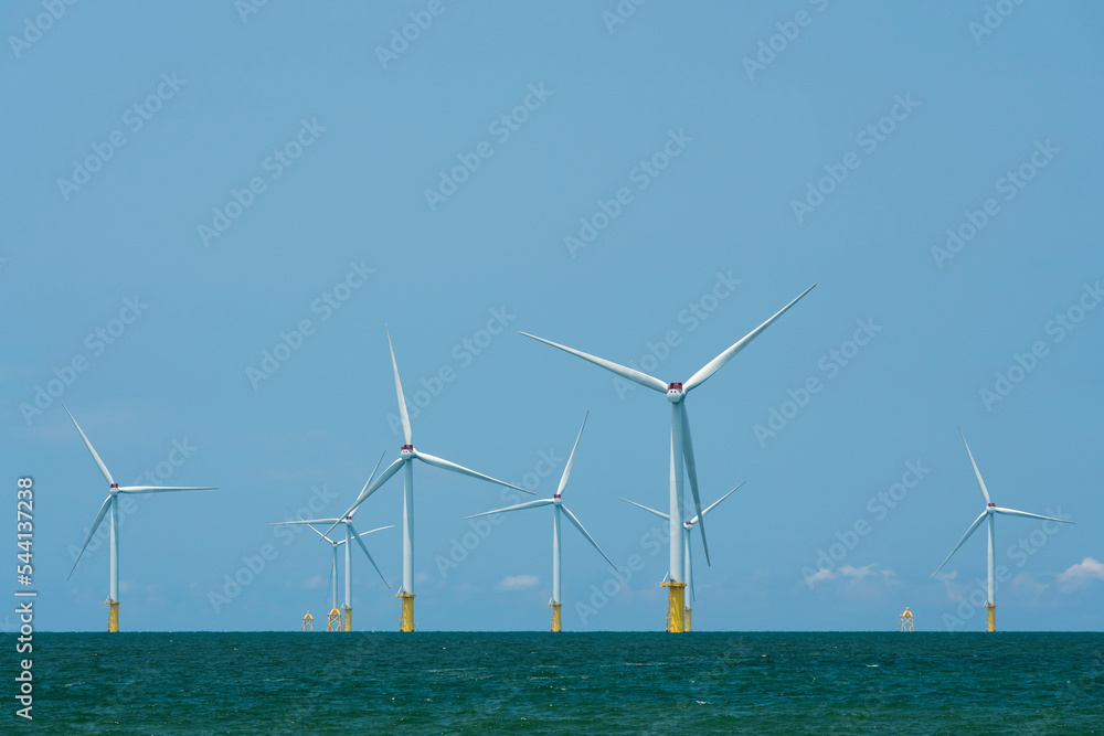 View of the Offshore wind power systems off the western coast of Taiwan.