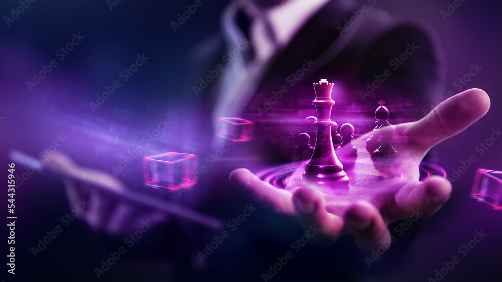 Business leadership concept. A strong leader, like a king on a chessboard, leads a company to growth and prosperity.