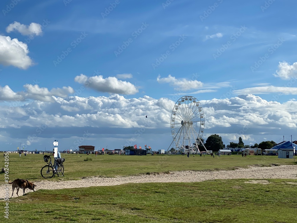 Image of jewish holiday Hanukkah with menorah (traditional candelabra) and candles over garland glitter lights background