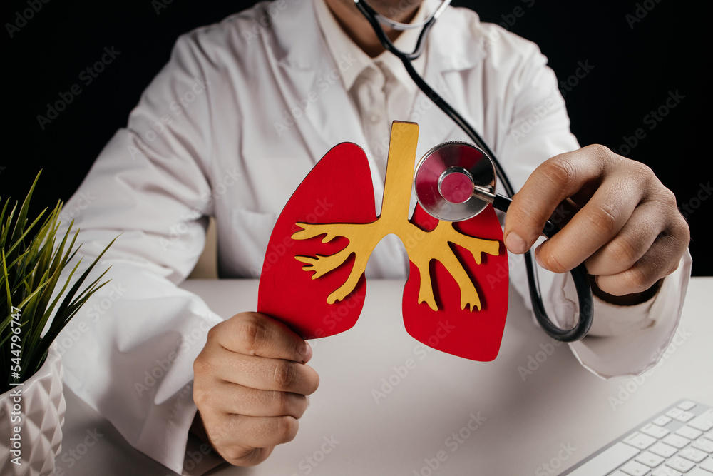 Doctor holding lung organ model. Awareness of lung diseases concept