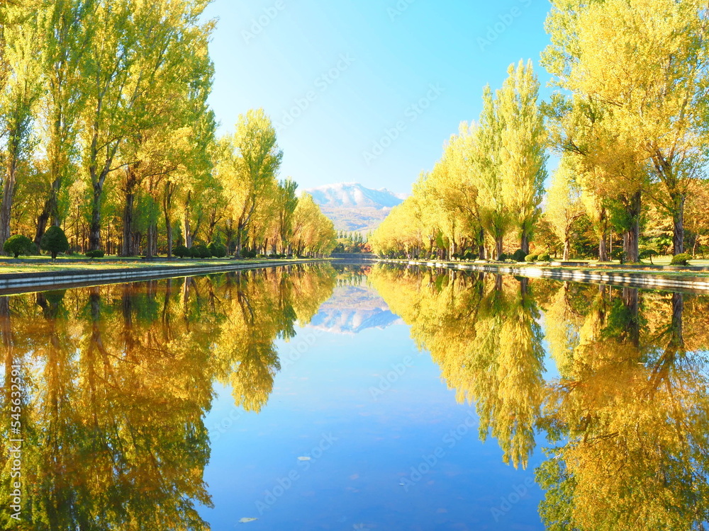 北海道の絶景 秋の前田森林公園 ポプラ並木の紅葉風景
