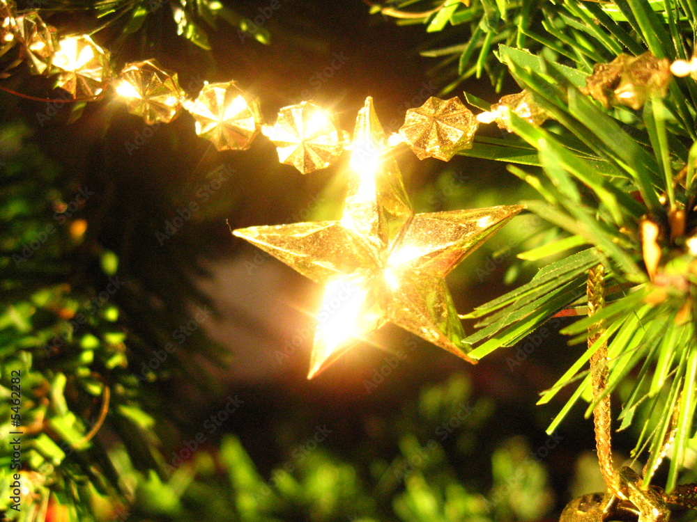Leuchtender Stern am geschmückten Weihnachsbaum