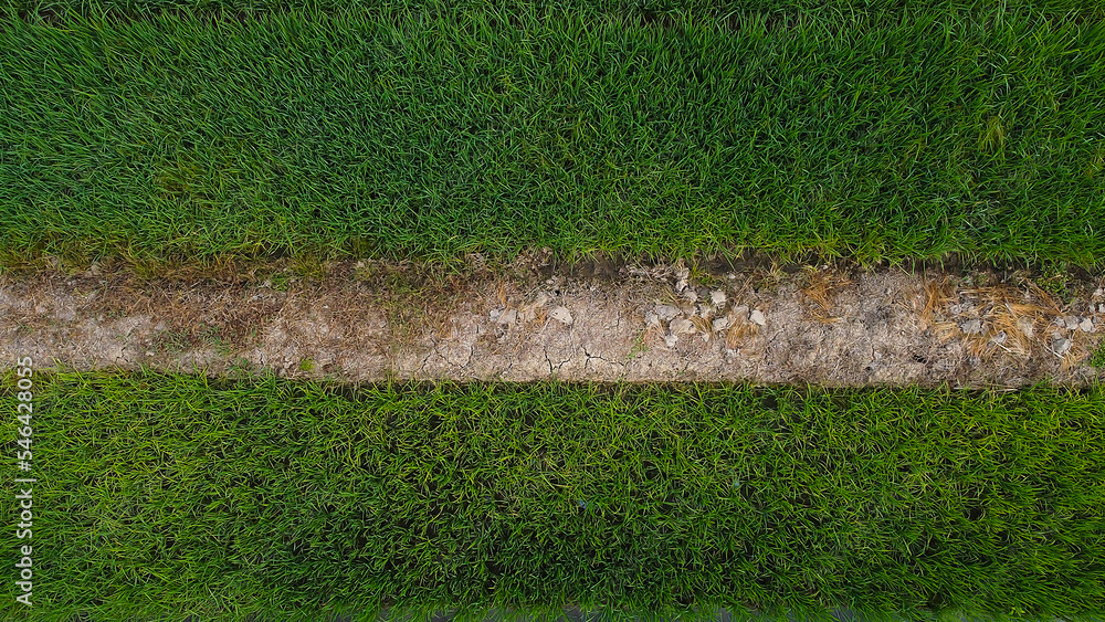Top aerial view of agriculture in rice fields for cultivation. Natural the texture for background.
