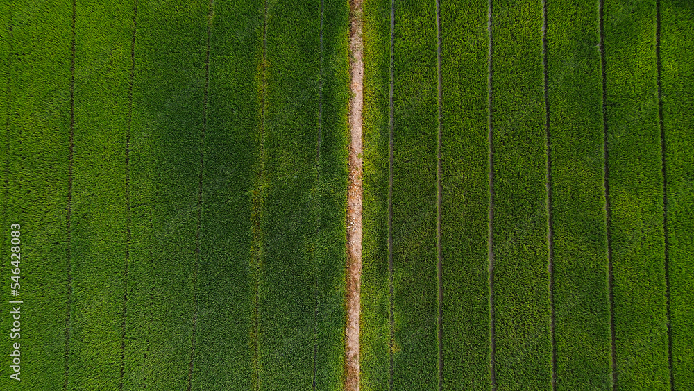 Top aerial view of agriculture in rice fields for cultivation. Natural the texture for background.
