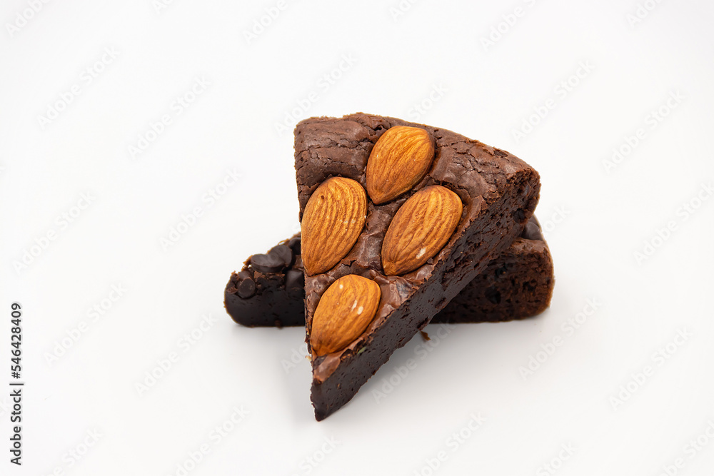 Brownies mix .almonds delicious on white background.