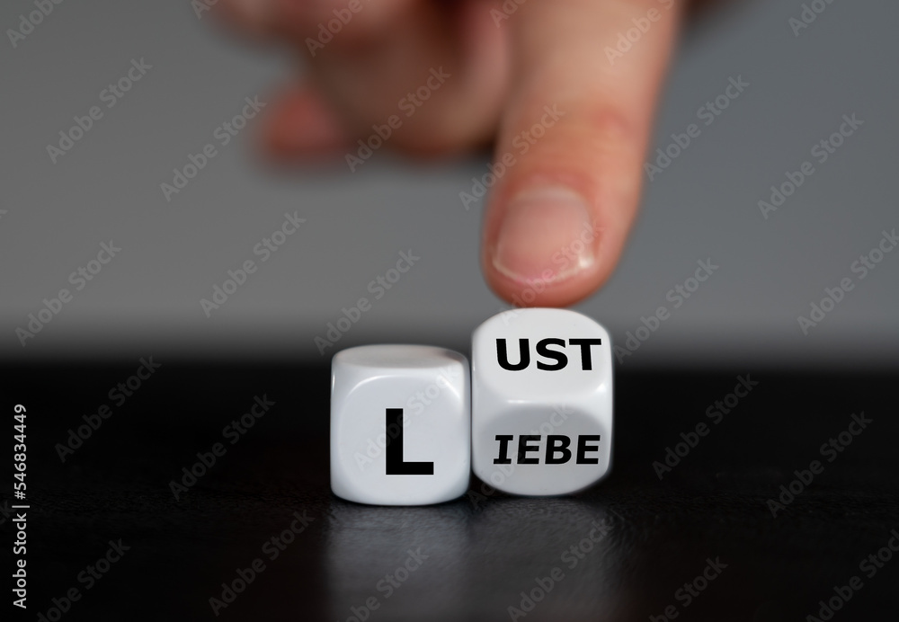 Cubes form the German words 'Lust' (desire) and 'Liebe' (love).