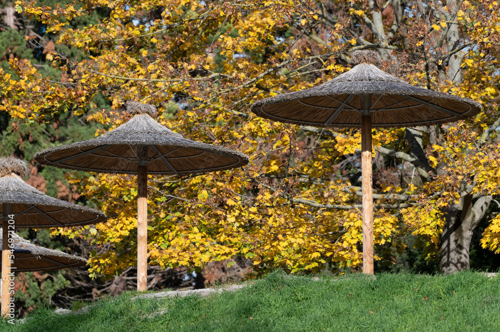 Bastschirme im herbstlichen Park