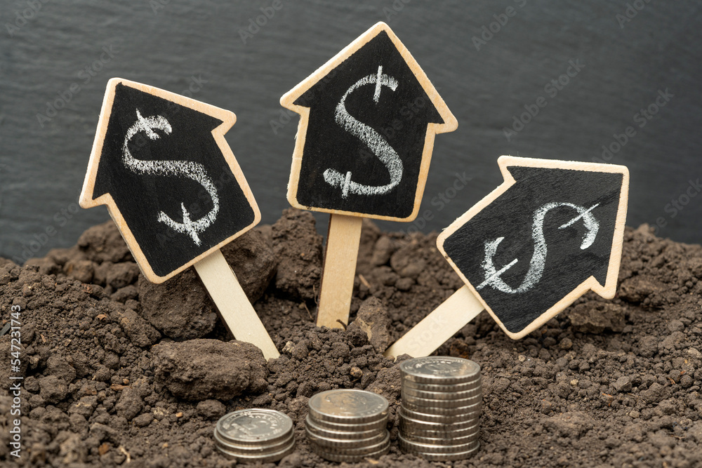 The figure of a house with a stack of coins Against the background of the earth. The concept of investment property and housing construction.