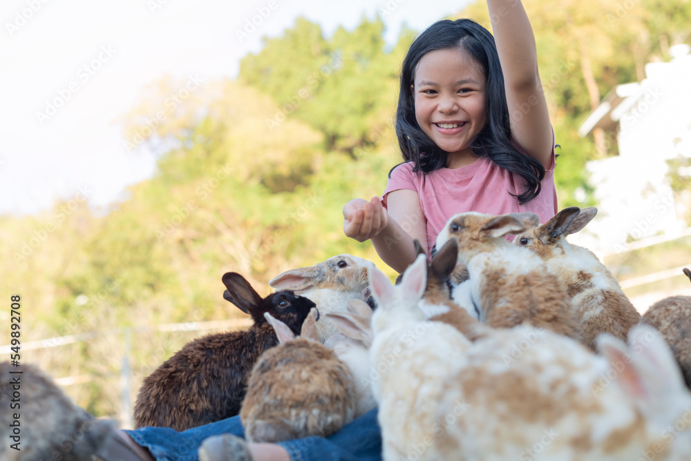 teenage girl with the rabbit. happy little girl holding cute fluffy bunny. friendship with easter bunny. spring photo with beautiful young girl with her bunny. girl is holding a cute little rabbit.