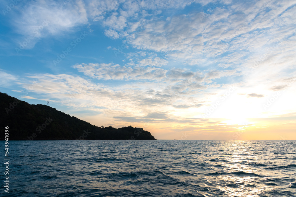 Landscape of sunset seascape at Khao Laem Ya–Mu Ko Samet National Park, Rayong province, Thailand