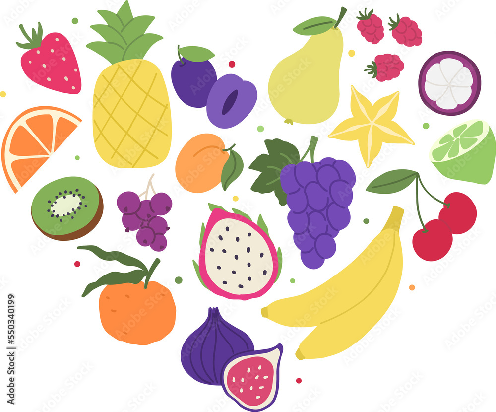 Fruit and veggies rainbow composition