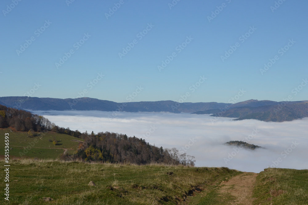 les montagnes dans les nuages, au dessus des nuages dans les Vosges