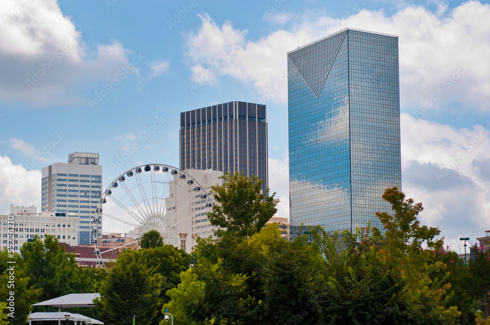 Cityscape with skyscrapers and Atlanta ferris wheel