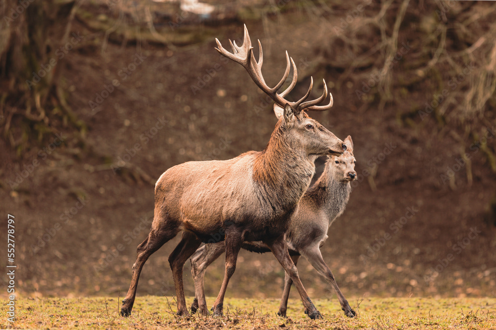 Stag portrait who sits regally in his natural habitat. Stag or deer could really have a full set of antlers. Hunter in the woods, hunt for deer or other stags