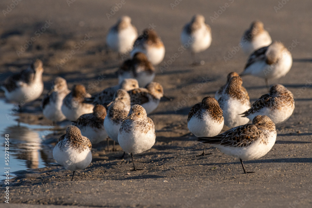 Bécasseaux sanderling (Calidris alba, Sanderling) sur la plage du Hourdel
